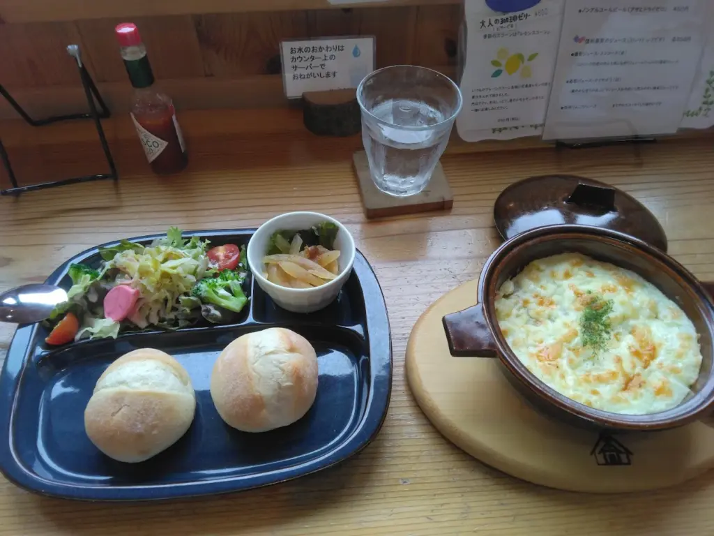 茅野市米沢エリアに佇む、懐かしい雑貨と本に囲まれたレトロな雰囲気が魅力の食堂カフェ。ランチからディナーまで通し営業しているので、さまざまなシーンで利用できます。オーナーの手作り料理がリーズナブルな価格で楽しめるのが特徴です。
