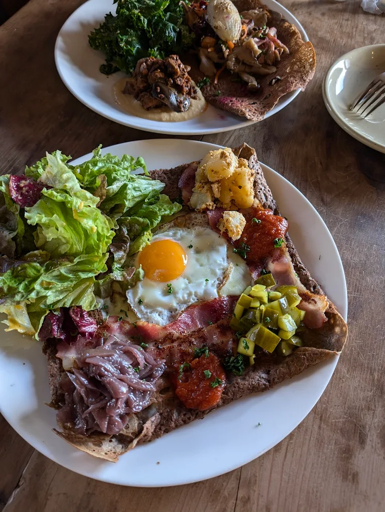 世界各地を旅した店主が「本当に食べたいもの」を追求してたどり着いたのが、地元食材を使ったヴィーガン料理。薪ストーブを囲むウッディな店内は、山小屋のような温かみがあります。