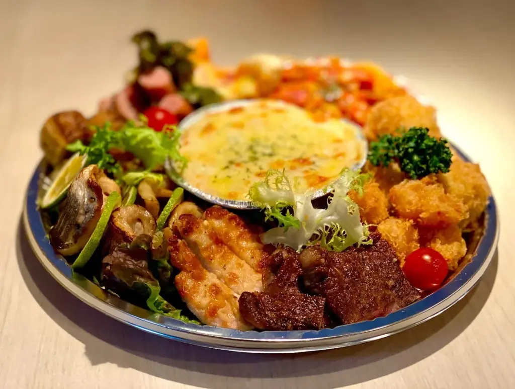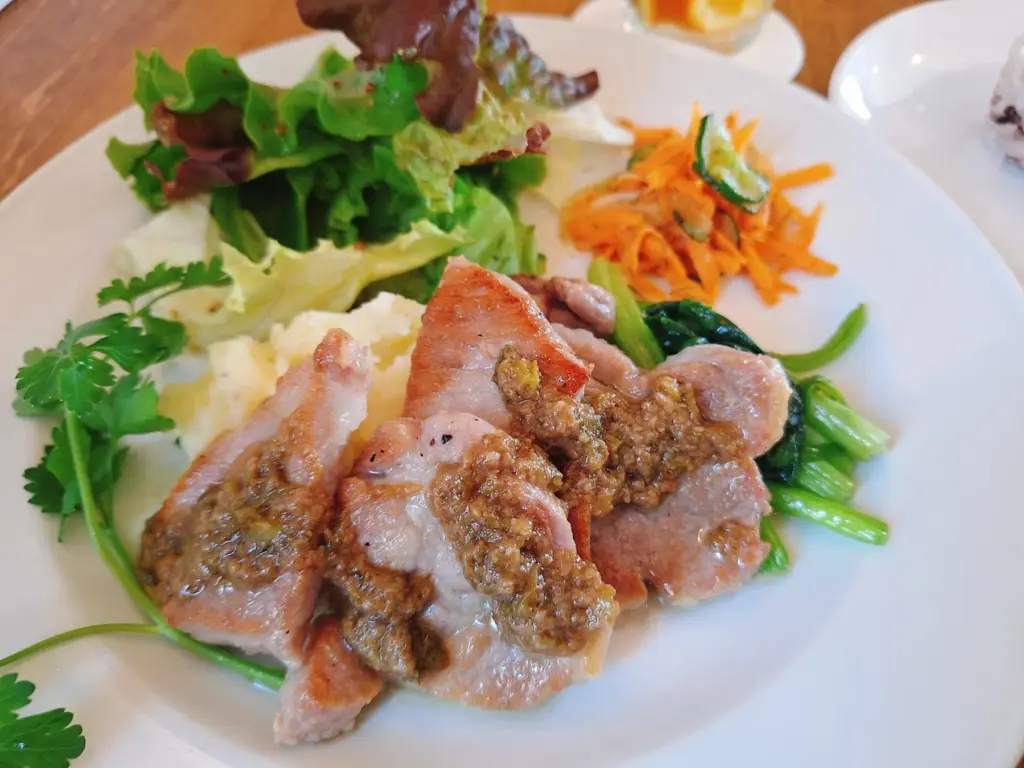 日替わりでドライカレー、焼肉サラダ丼、ポークピカタなど、無国籍料理を幅広く提供。看板メニューの揚げ鶏のネギソースかけは開店当初からの伝統の味で、ジューシーな揚げ鶏に絶妙なネギソースがかかった一品です。